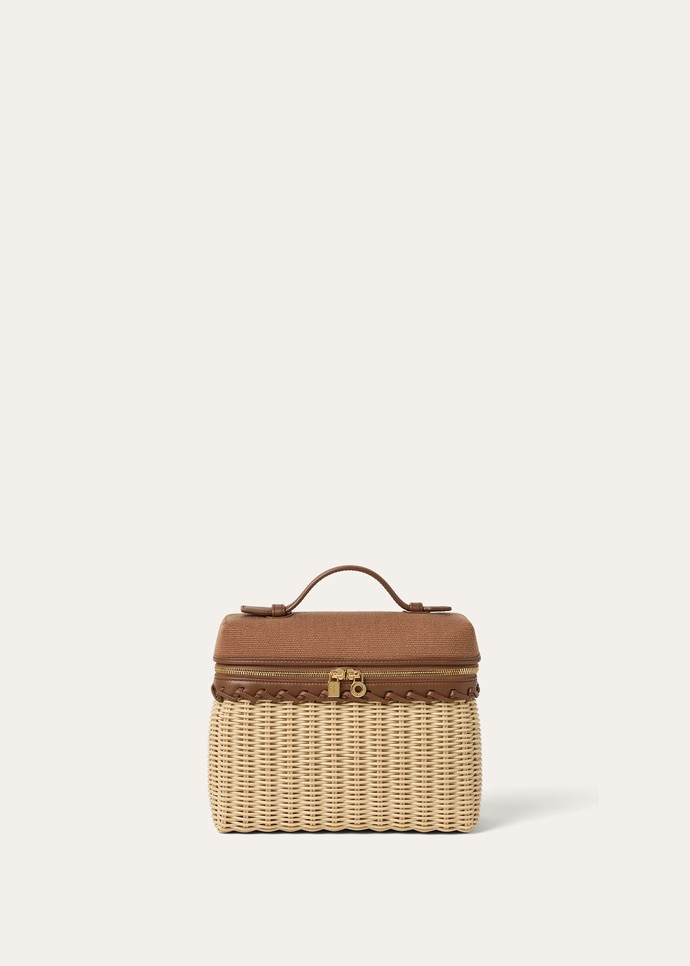 Infiniment polyvalente et raffinée, l’Extra Pocket L19 North-South représente la quintessence des pochettes Loro Piana au charme intemporel. Elle présente une base en osier tressé et une partie supérieure en toile de coton. Ce petit accessoire peut être porté en bandoulière ou à la main, lorsque la sangle est retirée.